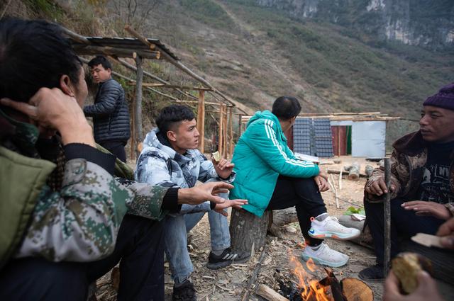 12月23日,某色蘇不惹(右三)和同伴在修民宿的地方休息吃東西。